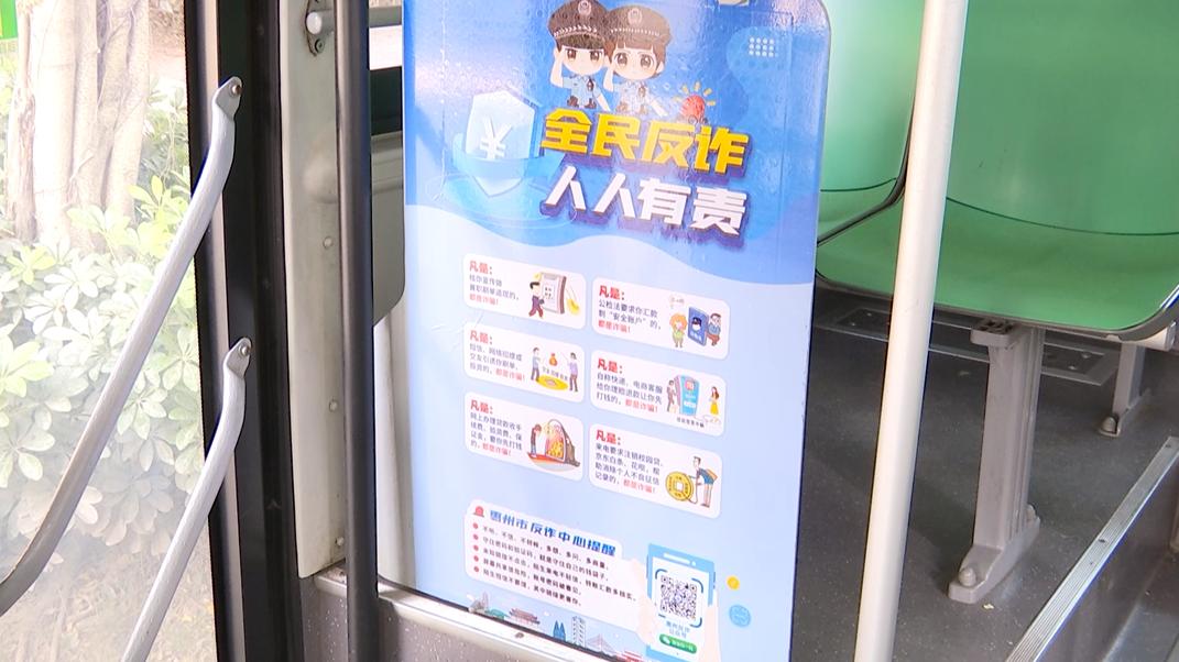 反詐公交不僅穿上了“新衣”,讓人耳目一新,而且內容滿滿、貼近民生。反詐主題公交車車廂內布置了不同類型顯眼的反詐宣傳海報,多元展現了五大高發詐騙類型和“斷卡行動”的有關知識,另外車內LED屏幕循環播放惠州公安拍攝的反詐宣傳片和朗朗上口的反詐宣傳標語,便于群眾在乘車期間,通過聽、看、想、學的方式,沉浸式了解反詐知識,提升反詐意識。