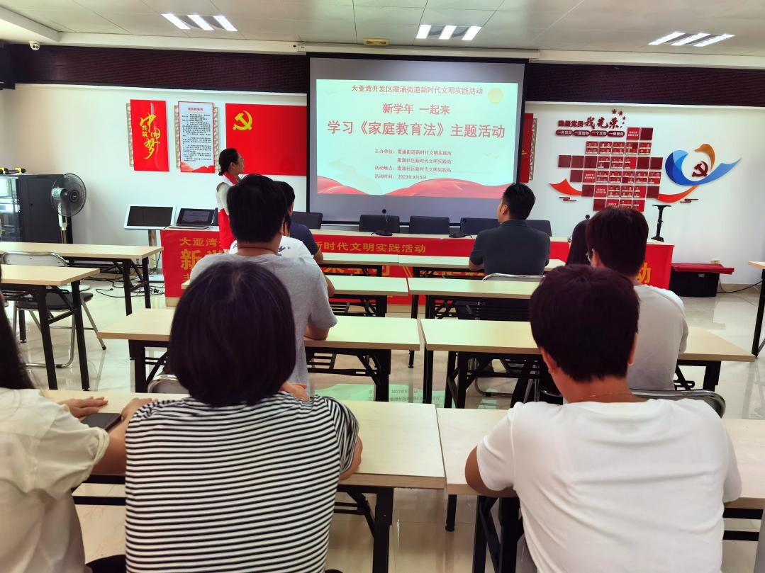 為貫徹落實(shí)習(xí)近平總書記關(guān)于加強(qiáng)家庭家教家風(fēng)建設(shè)重要論述,深入學(xué)習(xí)貫徹黨的二十大精神,宣傳實(shí)施《中華人民共和國(guó)家庭教育促進(jìn)法》,普及家庭教育科學(xué)理念和知識(shí),9月5日,大亞灣開發(fā)區(qū)霞涌街道新時(shí)代文明實(shí)踐所和霞涌社區(qū)新時(shí)代文明實(shí)踐站聯(lián)合舉辦“新學(xué)年、一起來(lái)學(xué)習(xí)《家庭教育法》”主題活動(dòng),20多名社區(qū)居民參加活動(dòng)。
