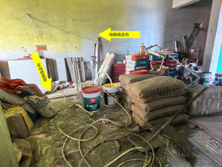 事故發生時,室內裝修作業屬于初步階段,已完成水電管線布設,基本完成大廳及房間的地板磚鋪設,正在噴涂墻面加固劑(俗稱“墻面封閉底漆/封底涂料”,用于墻面批刮膩子前的界面套膠加固處理)。該房屋平面布置見附圖1。