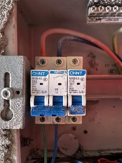 現場有一個臨時用電專用開關箱(配電箱),該電箱系裝修施工單位在小區物業單位辦理裝修許可時提供,電箱完好、未接線、未使用過,箱內配有兩套齊全的斷路器(空氣開關)、漏電保護器和三孔插座。見附圖6。