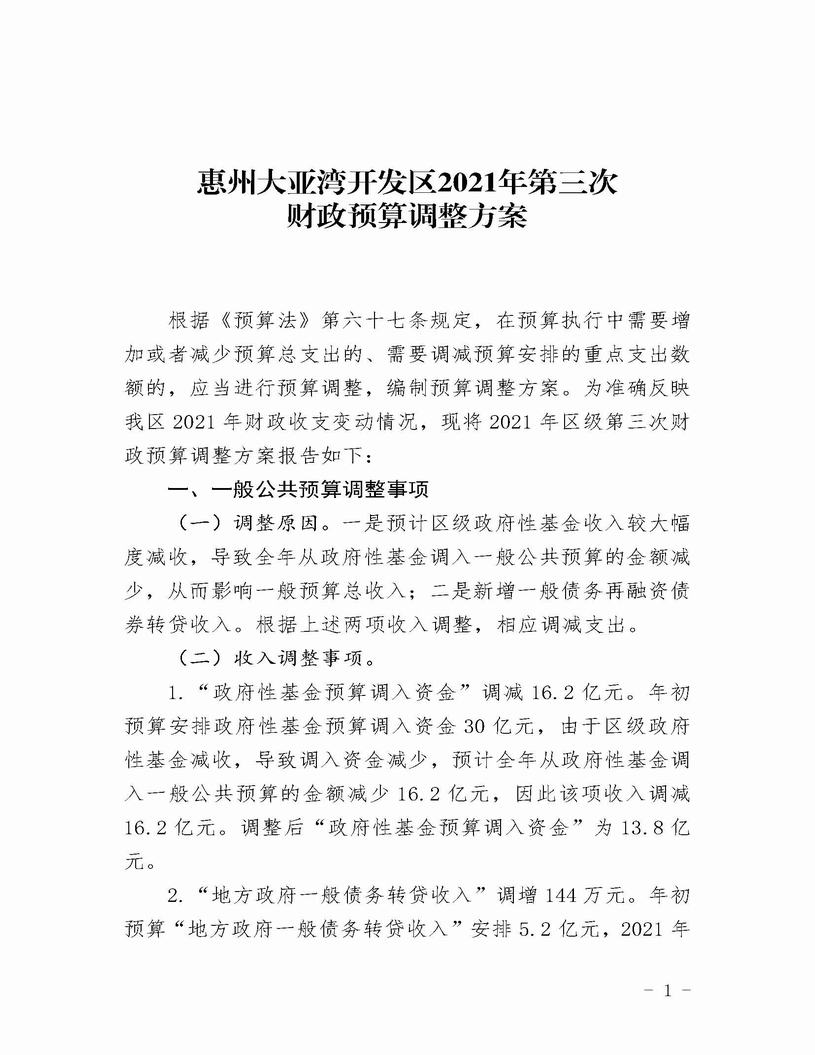 相關附件: 附件1-1:惠州大亞灣開發區2021年第三次財政預算調整表.pdf