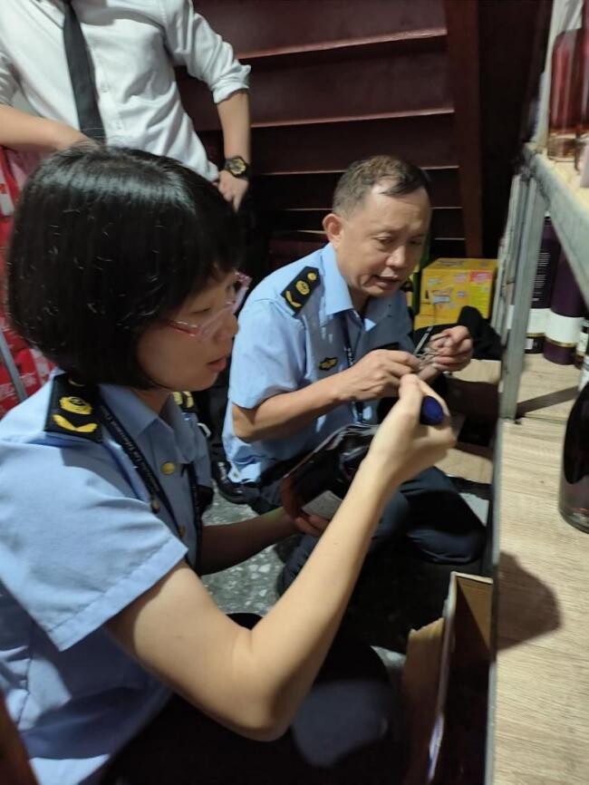另外,該酒吧涉嫌經營侵犯他人注冊商標專用權的酒類產品。執法人員在調酒吧臺旁的酒水倉庫中發現了71瓶“馬爹利”品牌的洋酒,經權利人遠程判斷,上述洋酒疑似為侵犯他人注冊商標專用權的商品。我局當晚對上述洋酒采取了扣押的強制措施并對當事人立案調查,目前該案正在進一步調查辦理中。