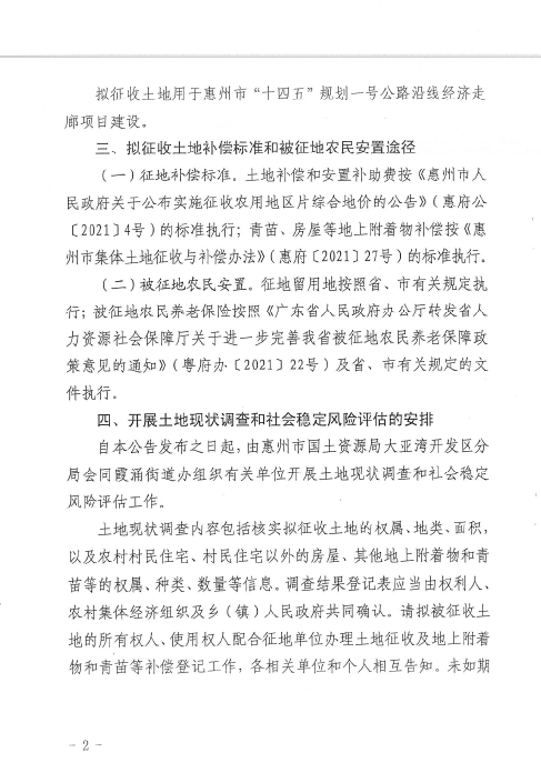 惠州大亞灣經濟技術開發區管理委員會征收土地預公告
