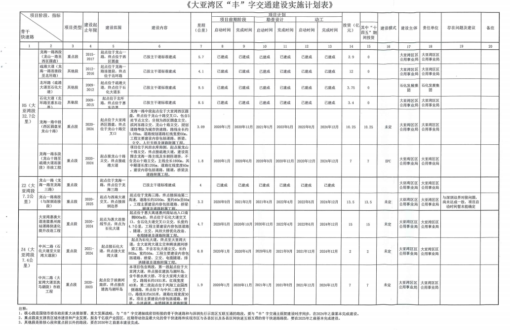 附件:大亞灣區(qū)“豐”字交通建設(shè)實(shí)施計(jì)劃表