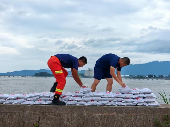 9月23日下午,大亞灣石化區濱海三路防潮堤壩受臺風風浪潮沖擊,面臨漫溢風險,大亞灣區應急管理局組織大亞灣森防大隊、國家危險化學品應急救援惠州隊在存在風險的