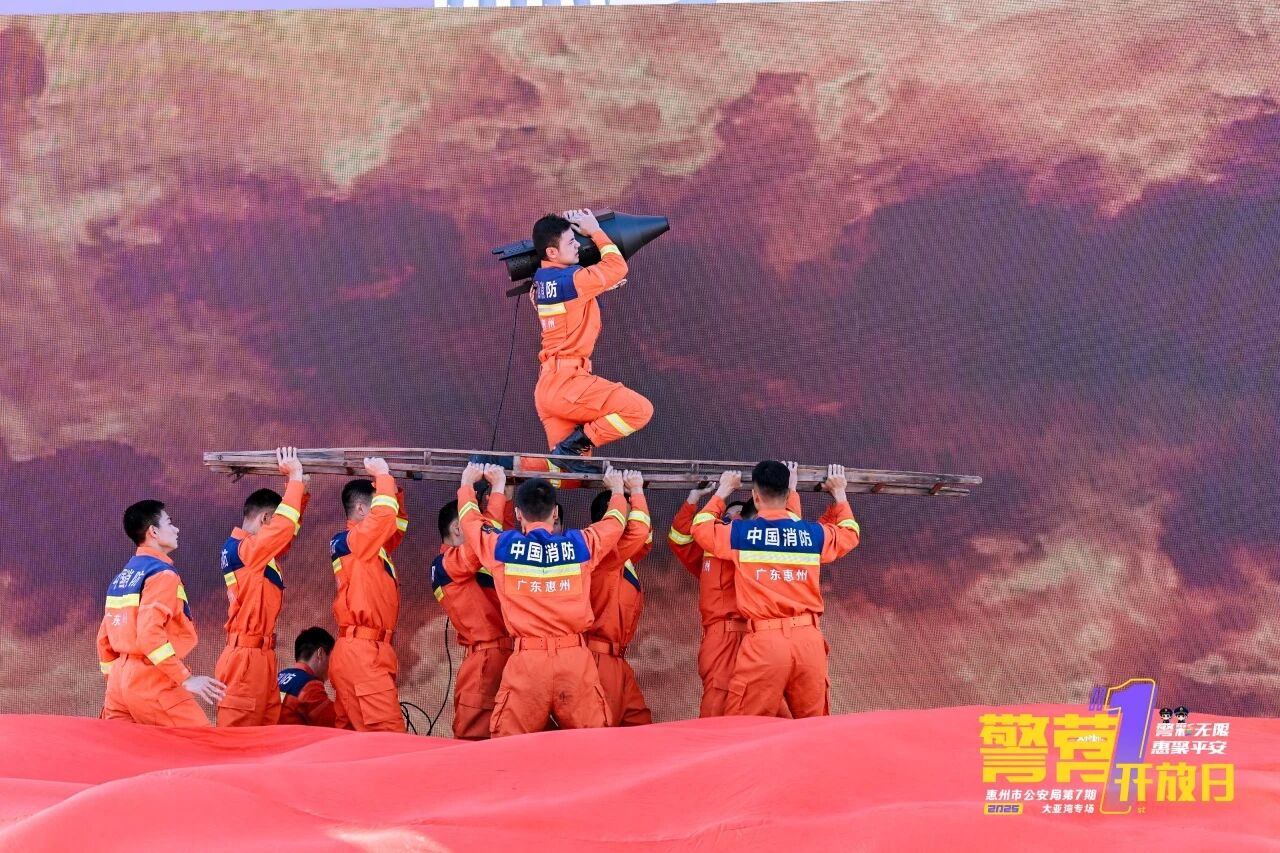 消防員情景表演《忠誠之火·大亞灣的守護者》將氛圍推向高潮。隊員們重現搶險救援現場,用“向險而生”的演繹,還原消防隊伍的忠誠擔當。觀眾們紛紛紅了眼眶,那是對英雄的敬意,更是對生命的敬畏。