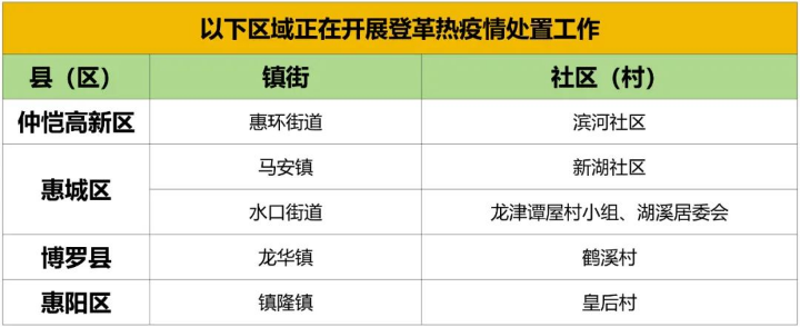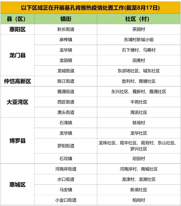 惠州疾控發布基孔肯雅熱、登革熱傳播風險區域(8月17日)