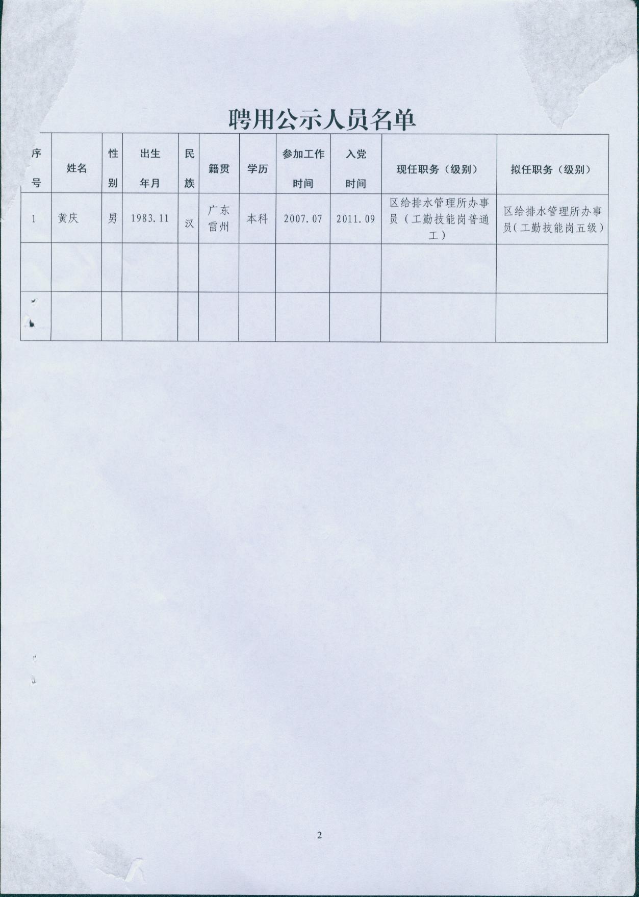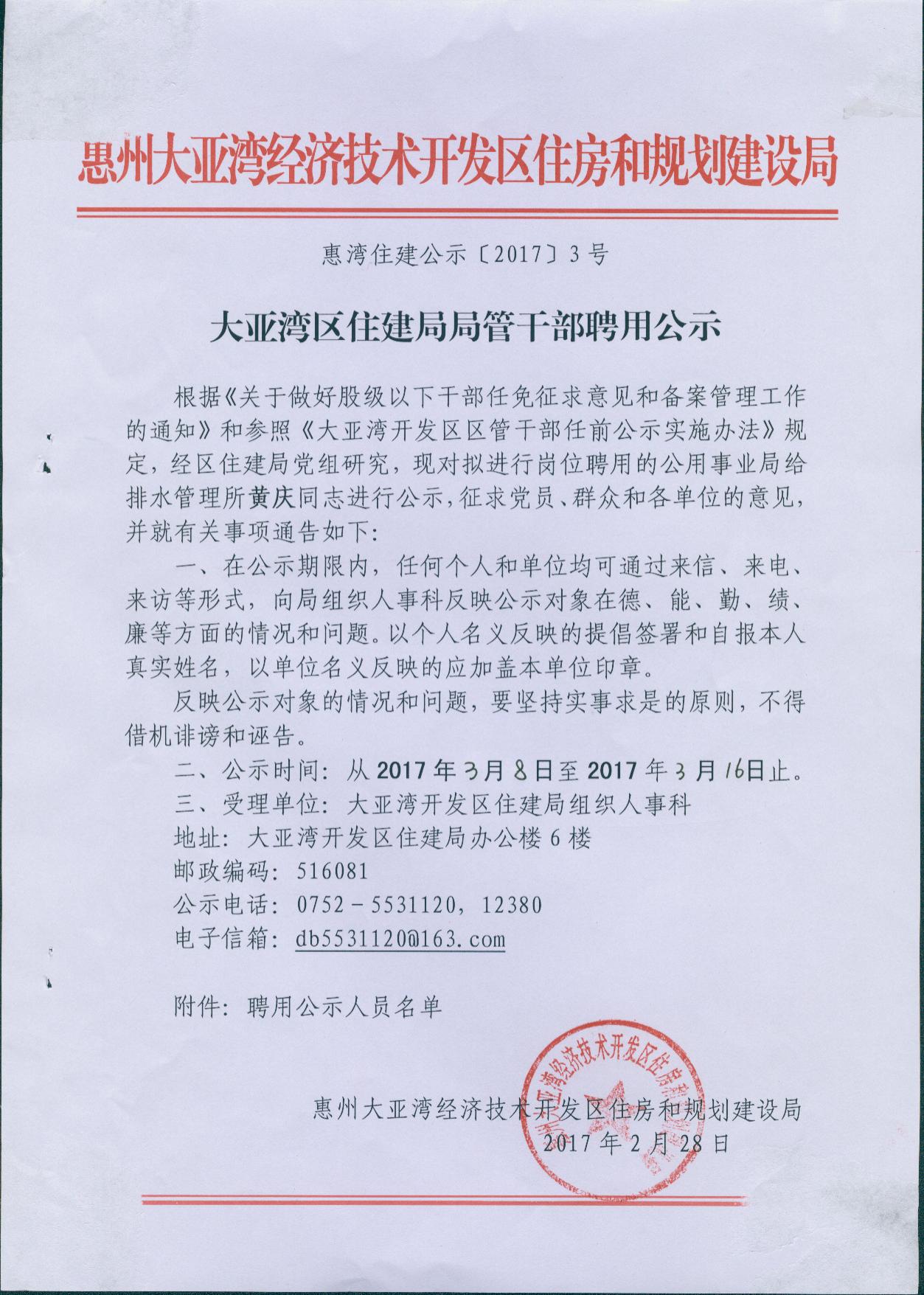 大亞灣區住建局局管干部聘用公示(惠灣住建公示〔2017〕3號)