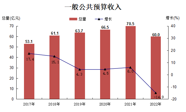 全年一般公共預(yù)算收入60億元,下降14.9%,其中稅收收入42.3億元,下降30.7%,非稅收收入17.7億元,增長(zhǎng)86.4%。一般公共預(yù)算支出70.1億元,下降13.9%。全區(qū)稅收總收入(含海關(guān)代征稅)572.9億元,增長(zhǎng)13.5%,其中海關(guān)代征稅收入254.5億元,增長(zhǎng)26.6%。若剔除海關(guān)代征稅,全區(qū)稅收總收入318.4億元,增長(zhǎng)4.9%。